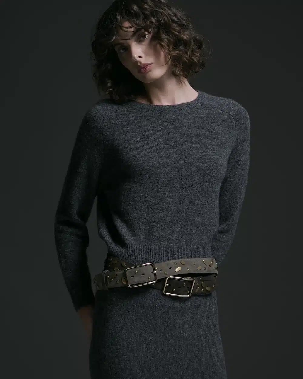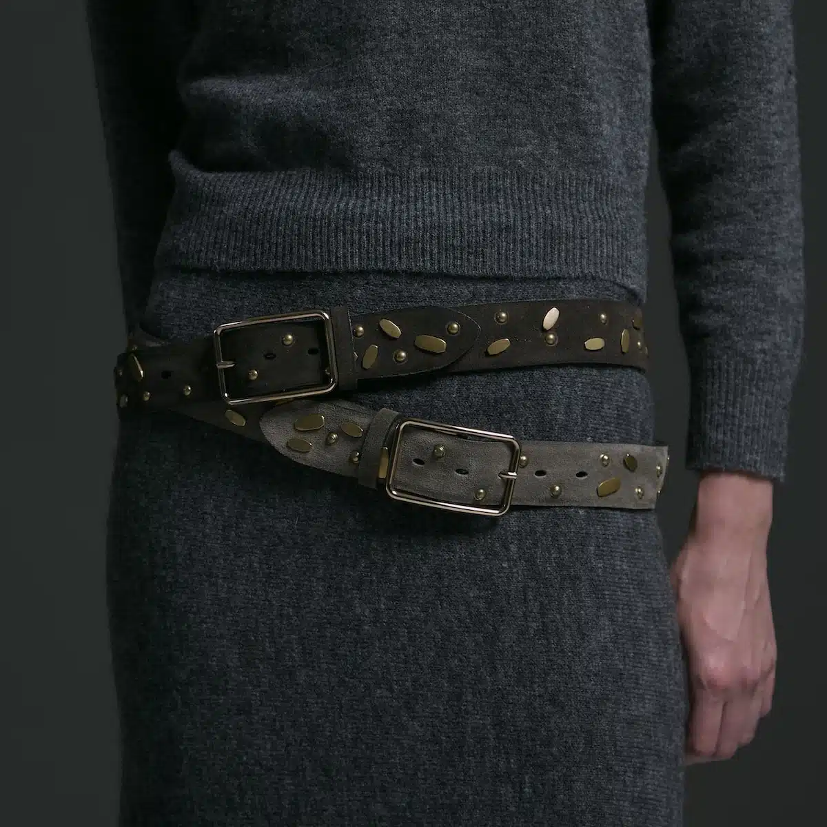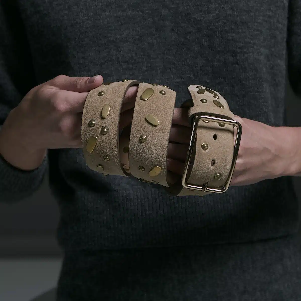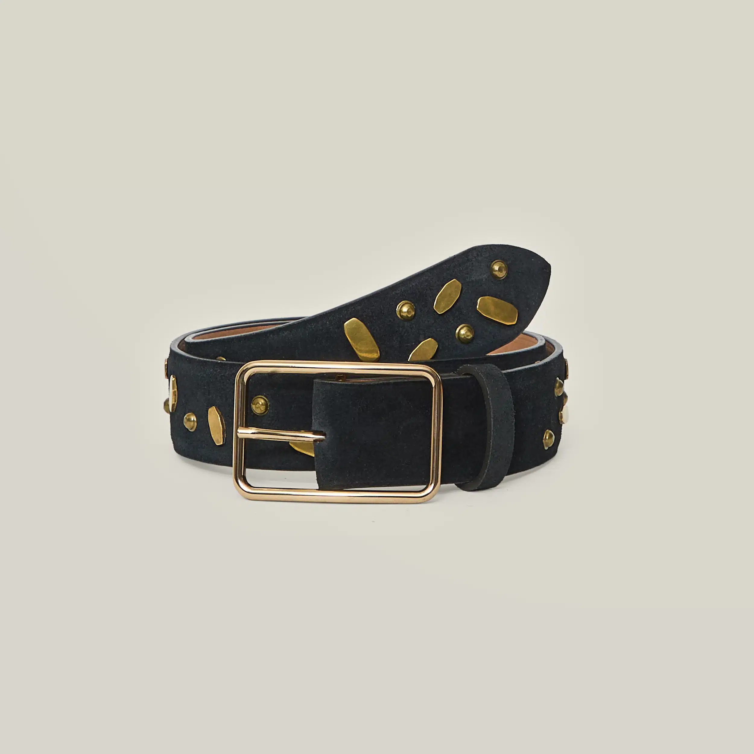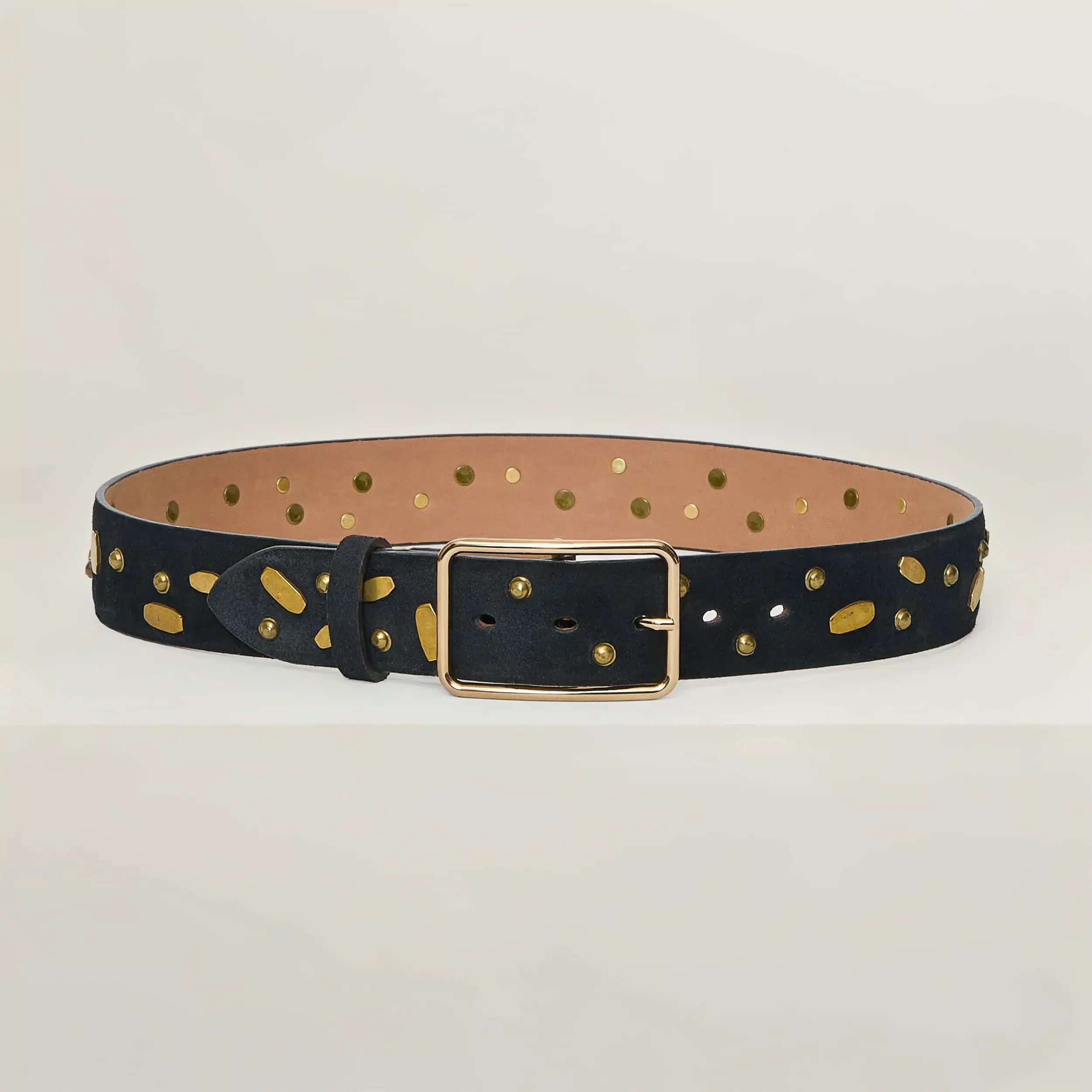 Fibbia Lara e cintura in camoscio con borchie 40mm