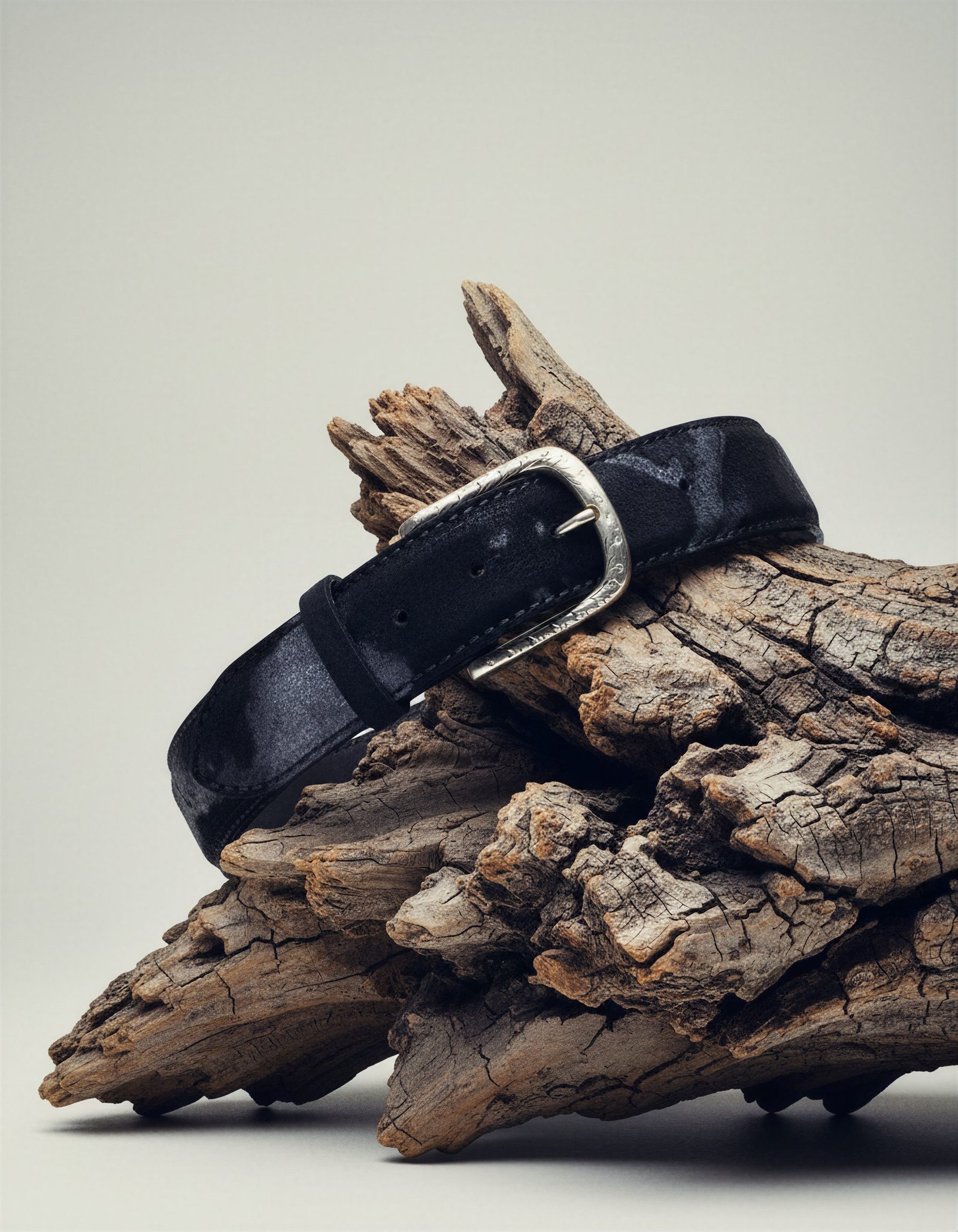• Cintura artigianale in pelle, realizzata con una raffinata tecnica metal tie-dye che crea sfumature uniche su ogni pezzo. Completata da una fibbia in metallo color argento, aggiunge un tocco sofisticato e contemporaneo a qualsiasi look.