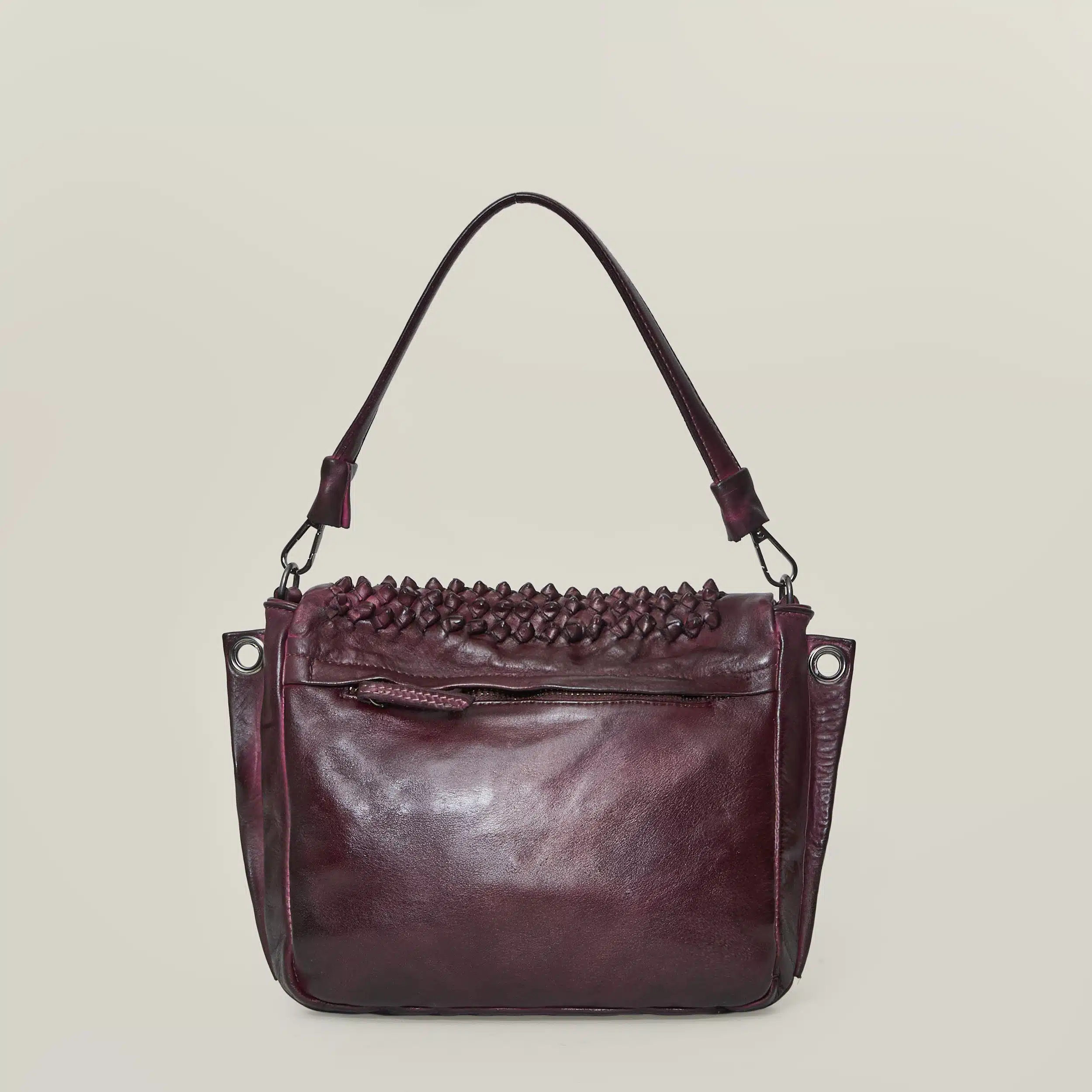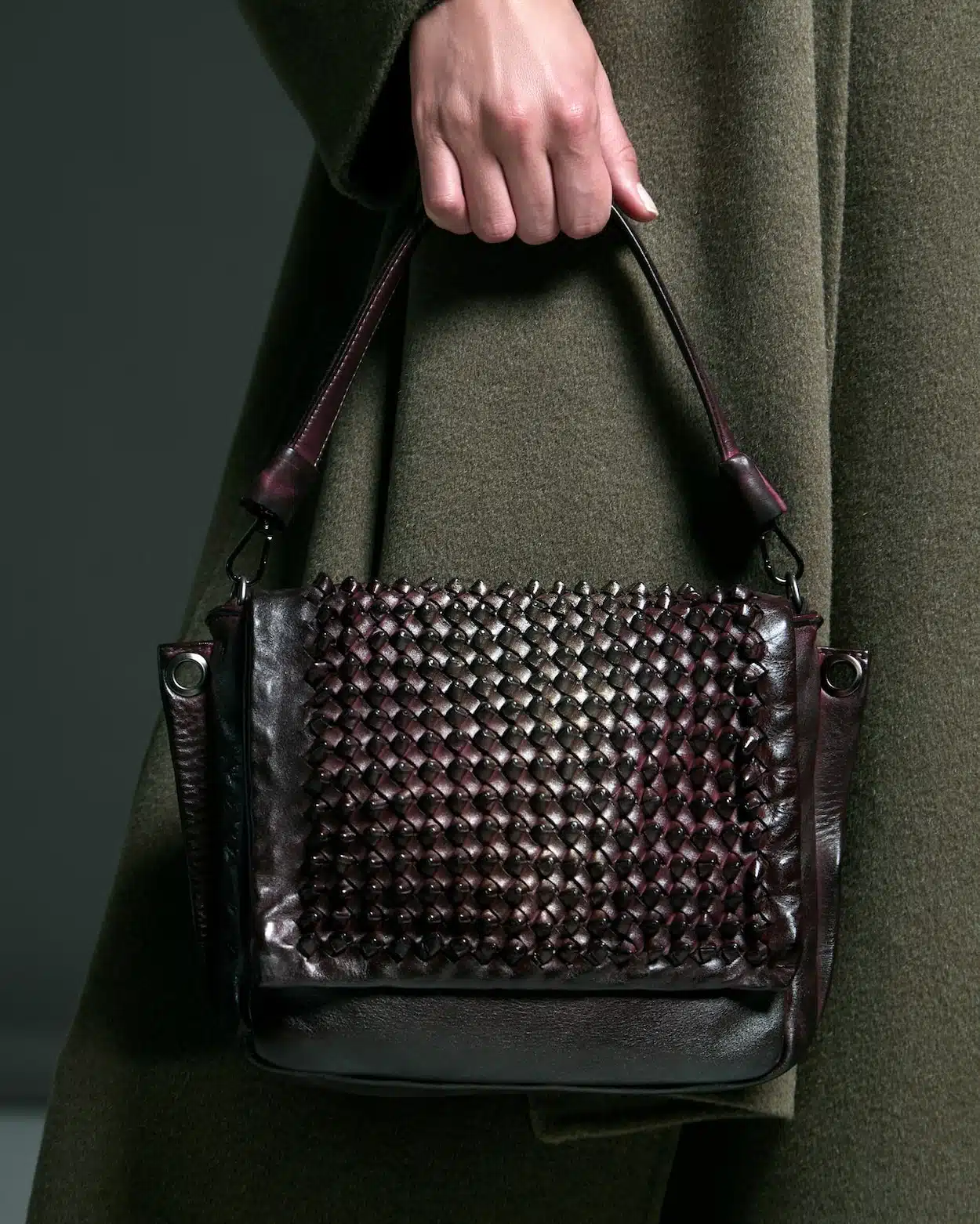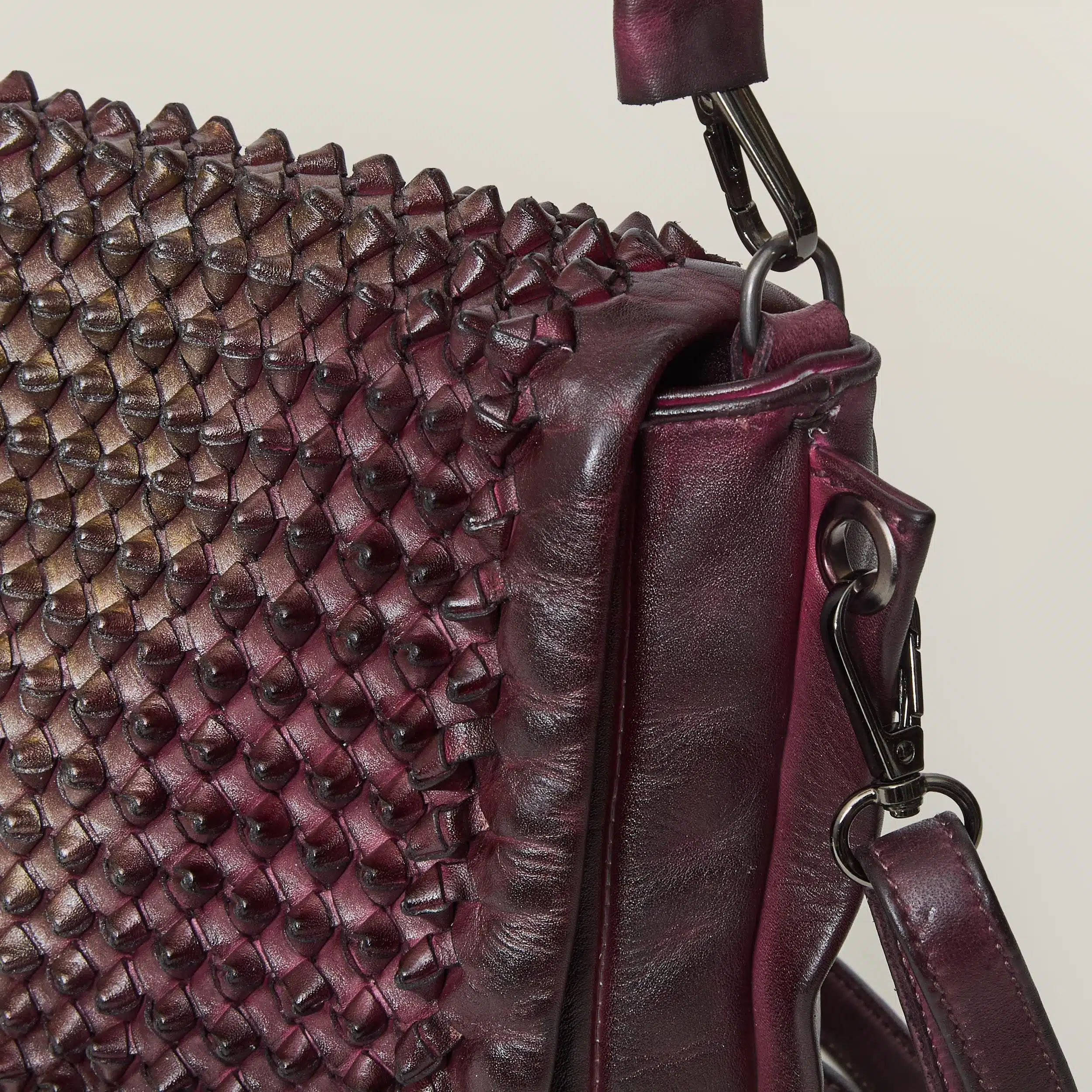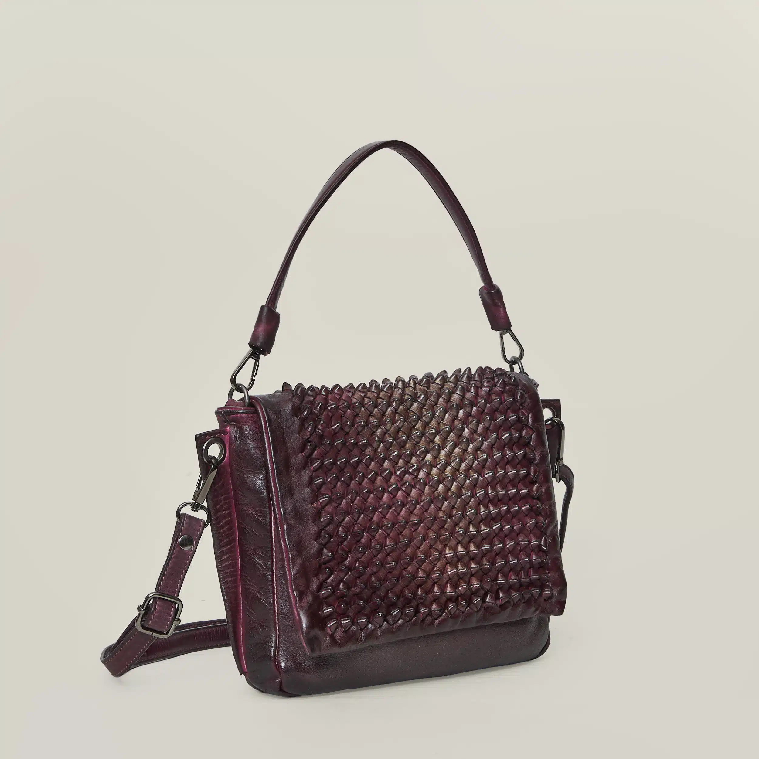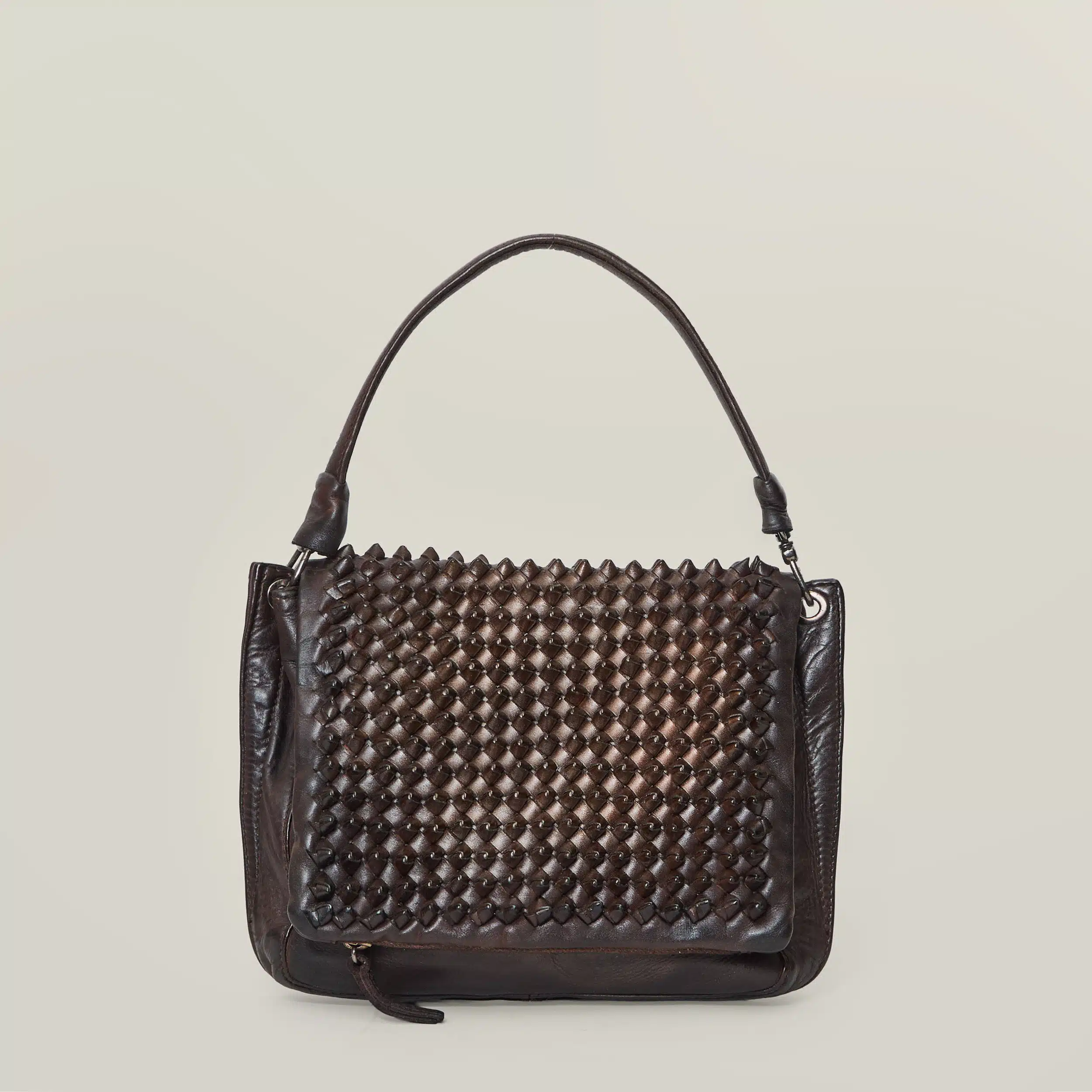 • Lavorazione: Patta in pelle intrecciata a mano a “nodo”